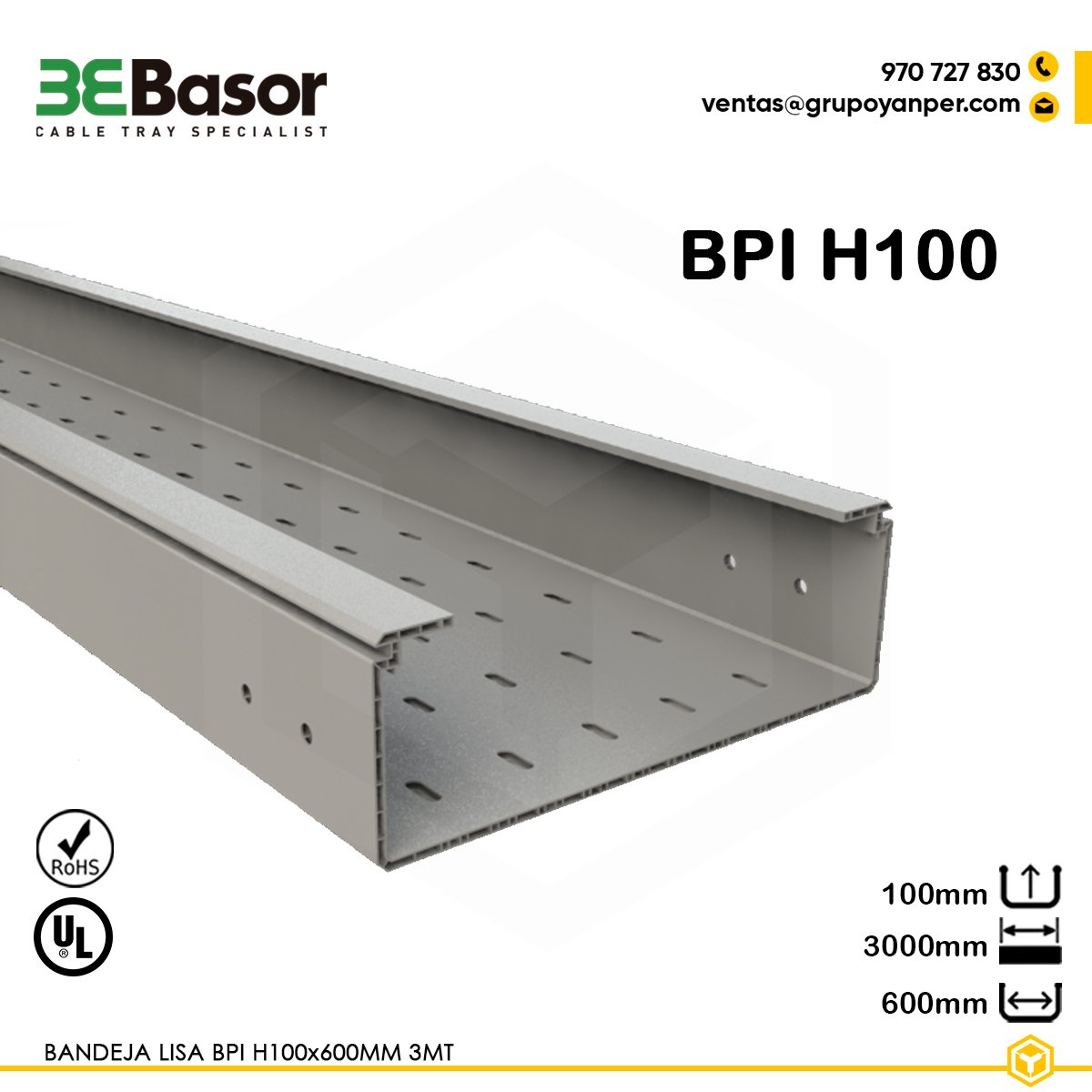 La Bandeja perforada BPI H100 600mm Ref. 201167 está fabricada en PVC M1 para aplicaciones interiores, con un diseño perforado que facilita la ventilación y el drenaje del cableado. Con una longitud de 3 metros, combina ligereza, resistencia y funcionalidad para entornos eléctricos e industriales donde se requiere orden y disipación.