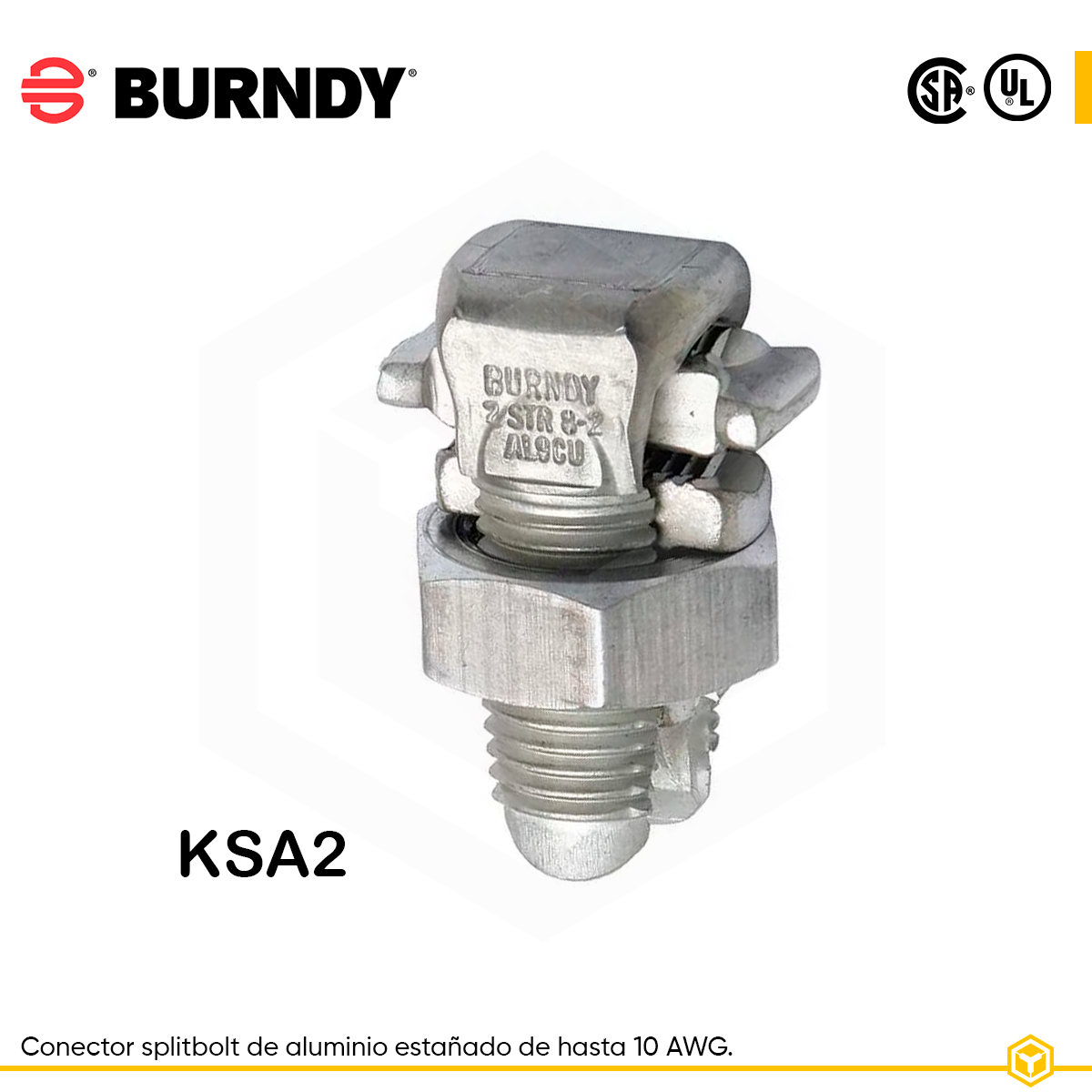 BURNDY CONECTOR SPLIT BOLT DE ALUMINIO ESTAÑADO HASTA 10 AWG UL KSA2