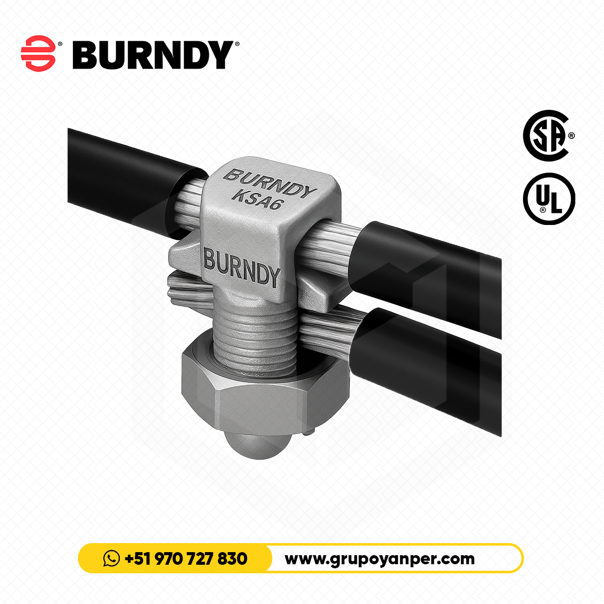 El Burndy KSA4 es un conector tipo split-bolt de la serie SERVIT®, diseñado para realizar conexiones eléctricas seguras y duraderas en cables de cobre sólido o trenzado hasta calibre 6 AWG. Fabricado en aleación de cobre de alta conductividad, es ideal para instalaciones industriales, empalmes, derivaciones y aplicaciones subterráneas directas.