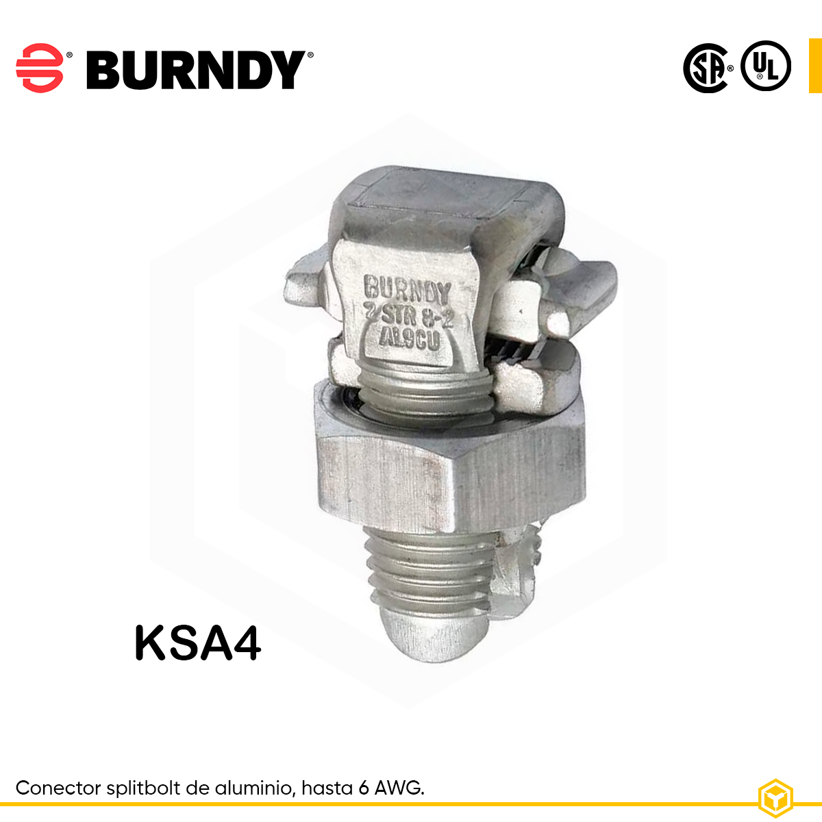 BURNDY CONECTOR SPLIT BOLT DE ALUMINIO HASTA 6 AWG UL KSA4