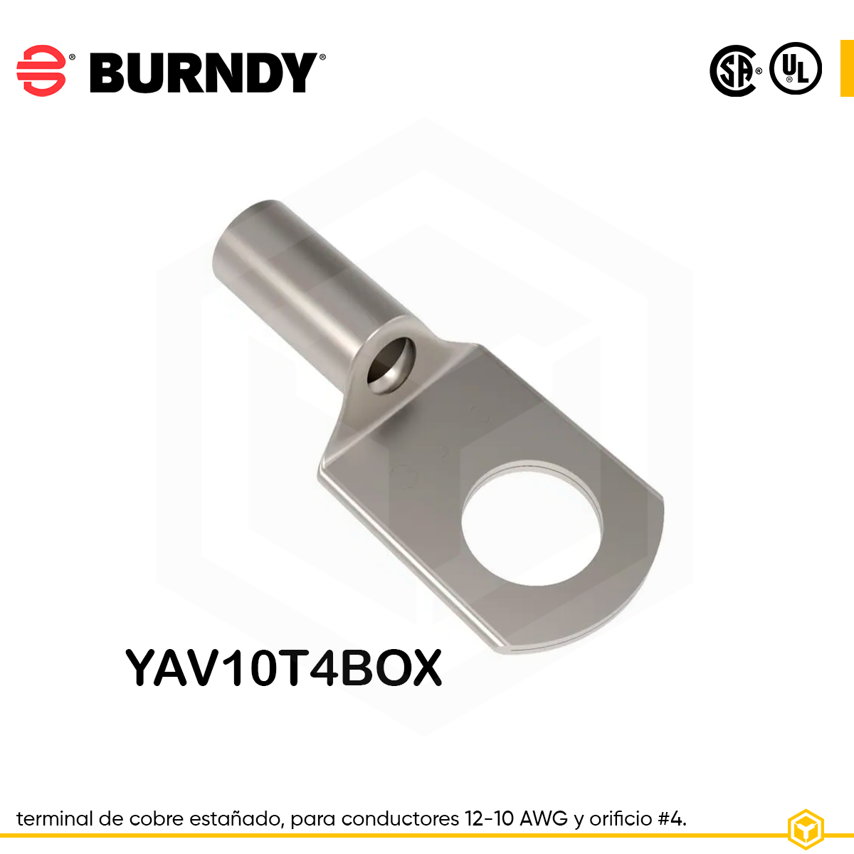 BURNDY TERMINAL DE COBRE ESTAÑADO PARA CONDUCTORES DE 12-10 AWG. #4. YAV10T4BOX.