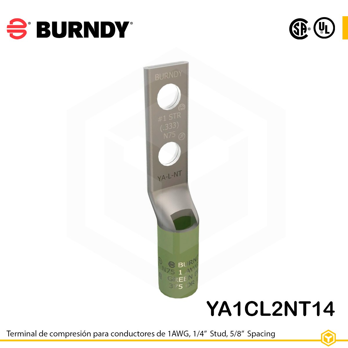 BURNDY TERMINAL DE COMPRESIÓN 1AWG 1/4″ STUD 5/8″ SPACING YA1CL2NT14