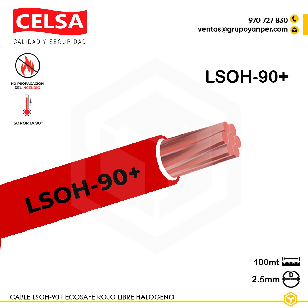 CELSA Cable ecosafe LSOH-90+ rojo 2.5mm2 Libre de Halogenos