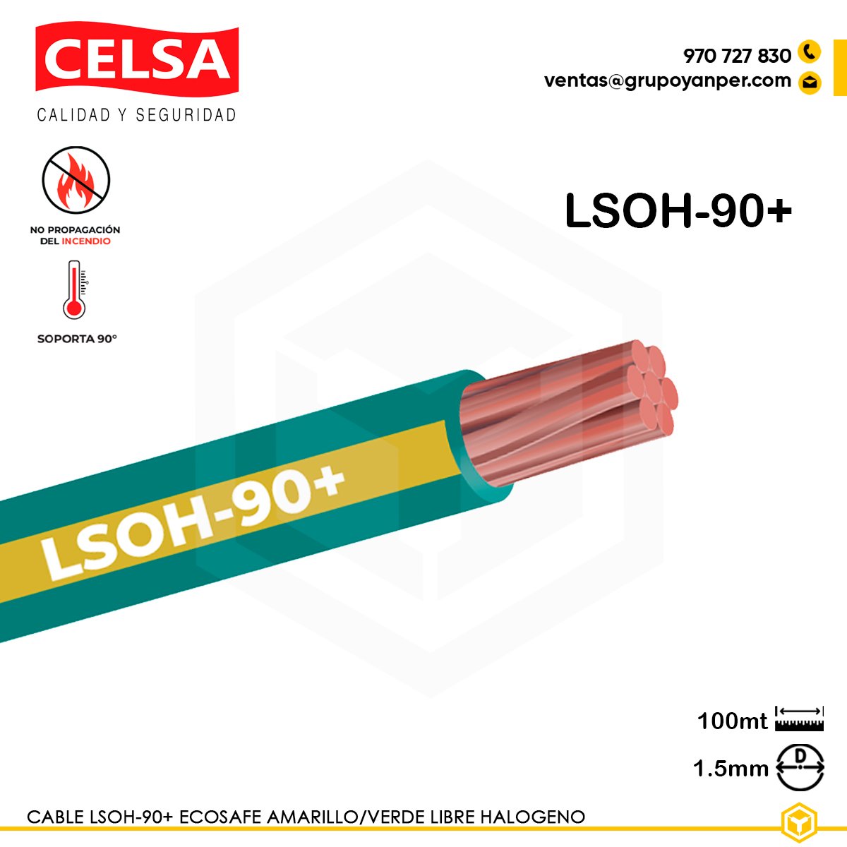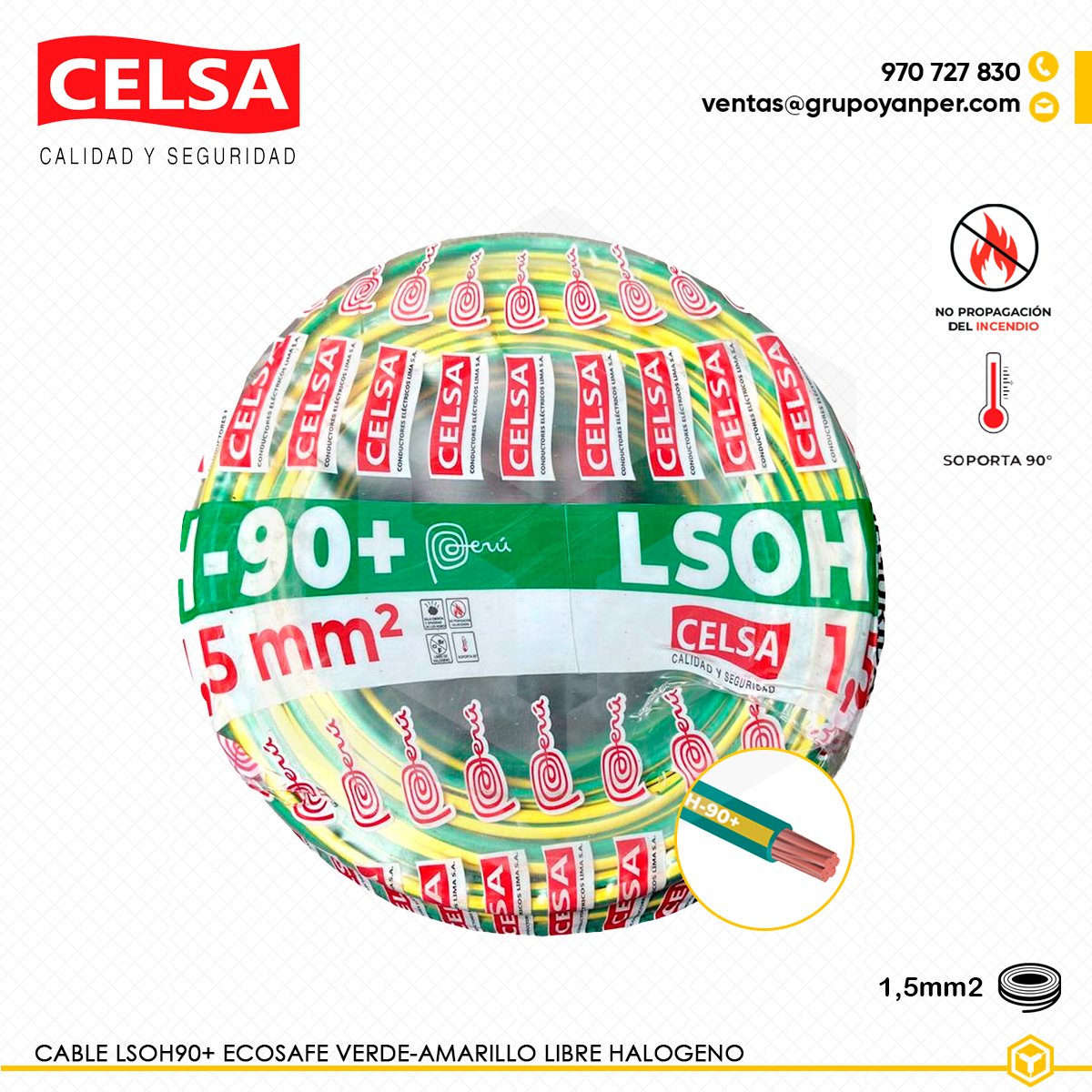 CELSA Cable ecosafe LSOH-90+ verde-amarillo 1.5mm2 Libre de Halogenos