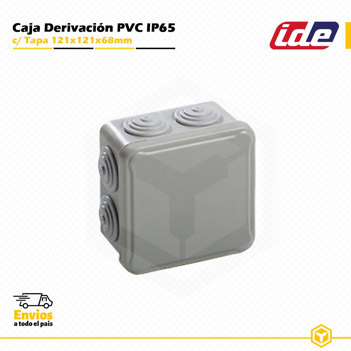 IDE Caja Derivación PVC IP65 121x121x68mm C/Tapa y Conos