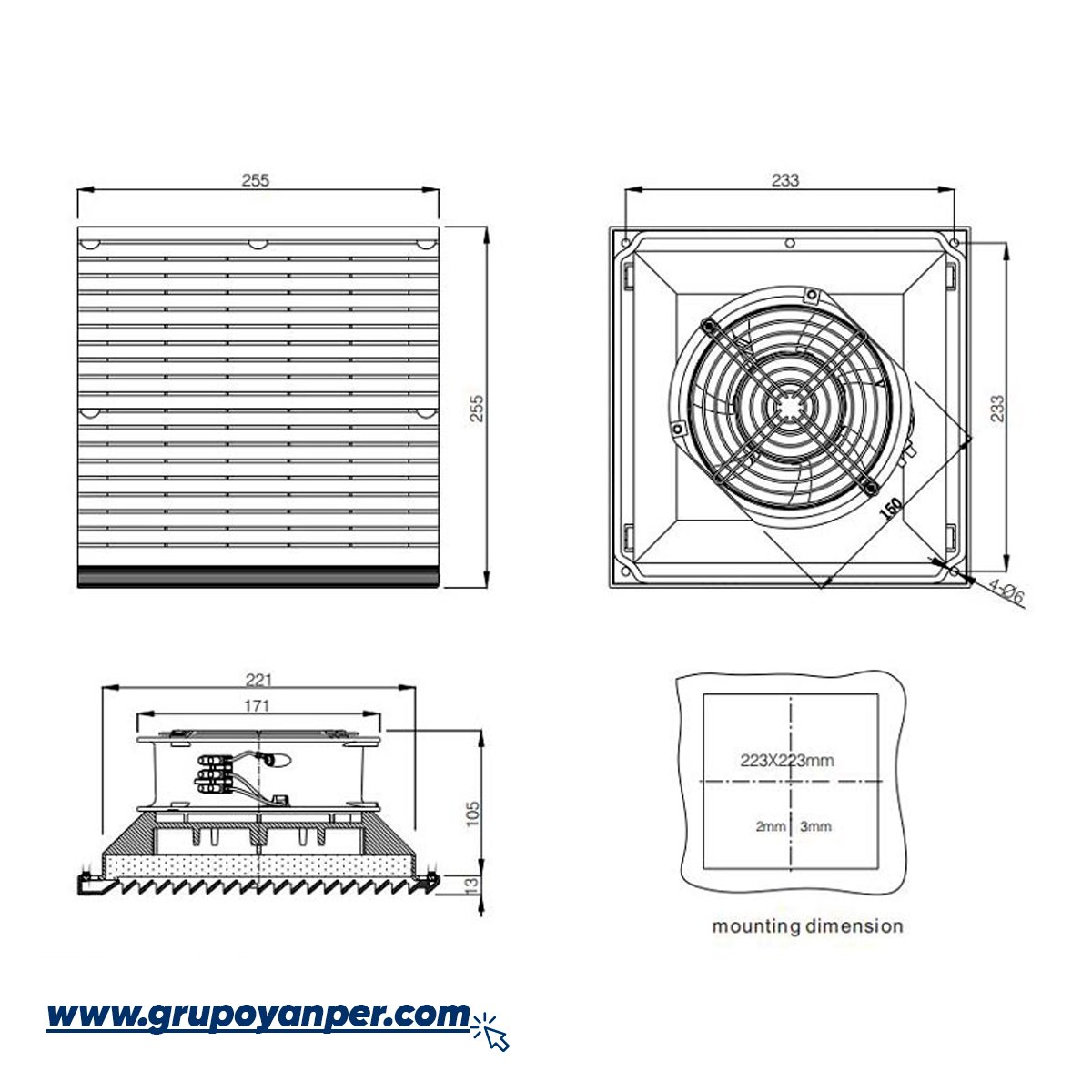Jason fan ventilador con filtro para tablero 255x255mm 110v FJK6625PB115