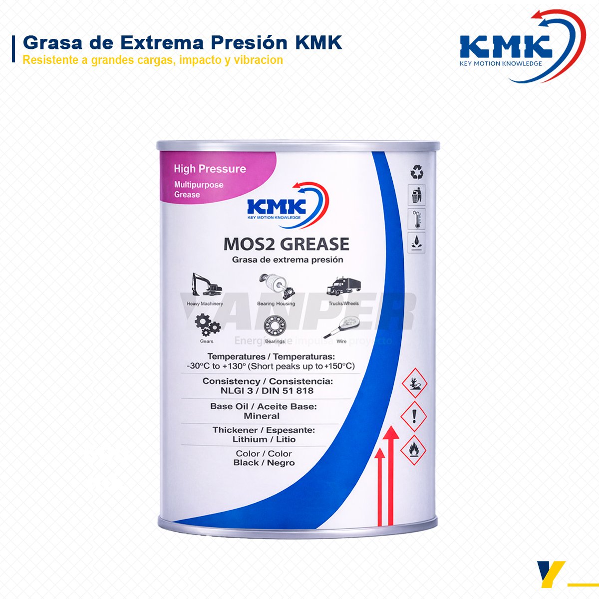 La KMK MOS2 Grease es una grasa multipropósito de extrema presión, desarrollada para la lubricación confiable de componentes sometidos a cargas elevadas, golpes mecánicos y condiciones severas de operación. Su formulación con disulfuro de molibdeno (MoS₂) crea una película lubricante sólida que reduce el desgaste, mejora la protección contra fricción y prolonga la vida útil de los equipos. Además, esta grasa ofrece excelente adherencia a superficies metálicas, alta resistencia al lavado y estabilidad térmica, lo que la convierte en una solución ideal para maquinaria pesada, sistemas automotrices e industriales donde la confiabilidad es crítica.