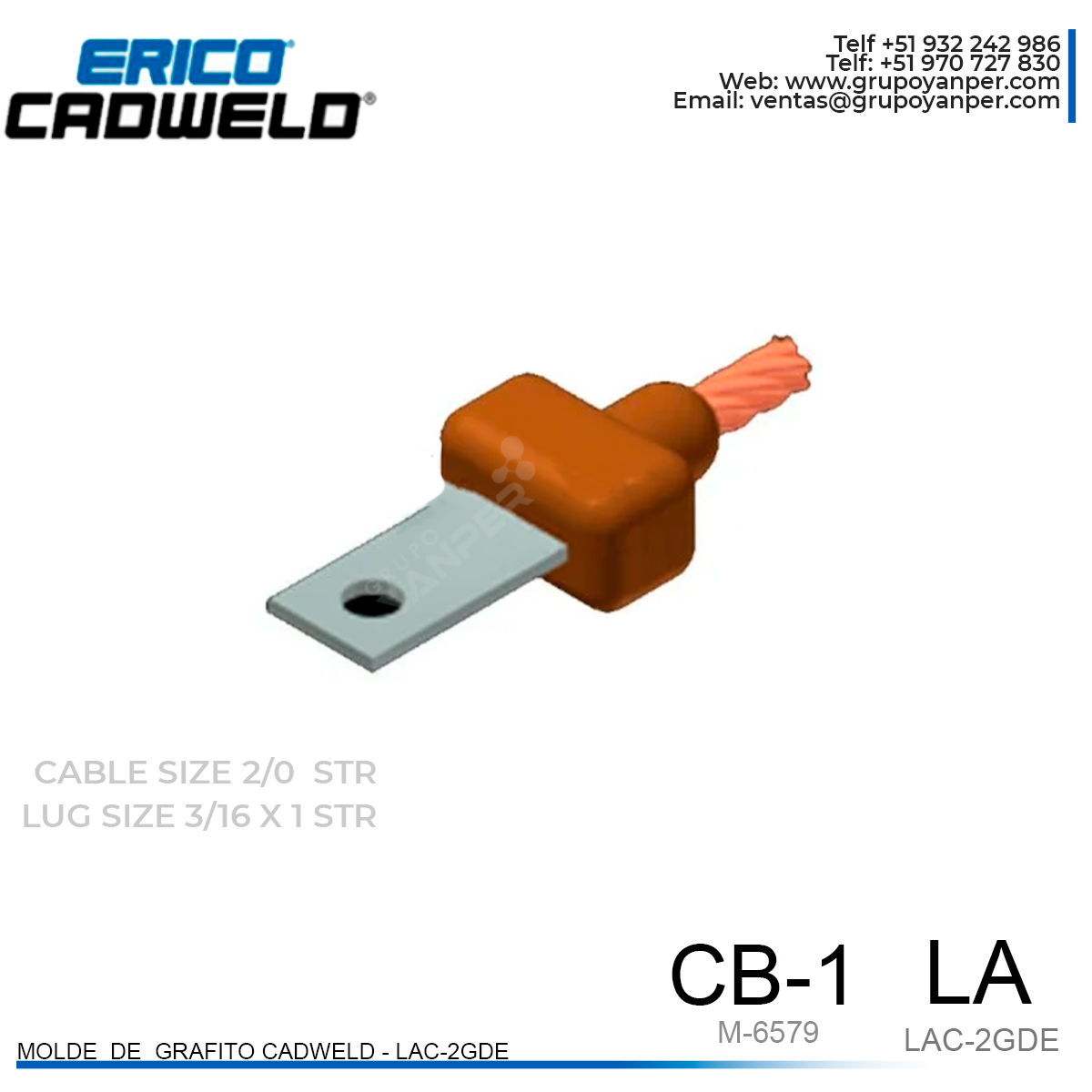 El Molde CADWELD Tipo LA LAC-2GDE forma parte del sistema de soldadura exotérmica desarrollado por CADWELD, especializado en conexiones eléctricas permanentes para sistemas de puesta a tierra y aplicaciones industriales críticas. Este molde está diseñado para conexiones cable a platina (zapata) de cobre, donde el conductor se une molecularmente a la platina mediante un proceso exotérmico controlado. El resultado es una conexión homogénea, sin puntos de aflojamiento, con excelente conductividad eléctrica y resistencia mecánica. Fabricado en grafito de alta densidad, el molde LAC-2GDE soporta altas temperaturas, permite múltiples usos y asegura una soldadura repetible cuando se utiliza con la carga exotérmica correcta. Es ideal para aplicaciones en subestaciones, mallas de tierra, estructuras metálicas y sistemas de protección contra descargas atmosféricas.